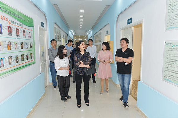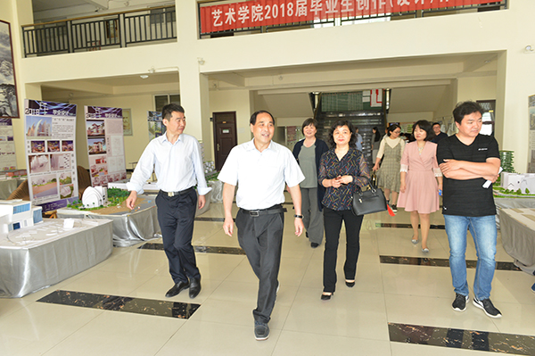 王北生、毛海涛等陪同考核组成员进行现场考察,深入了解我校语言文字规范化工作有关情况。