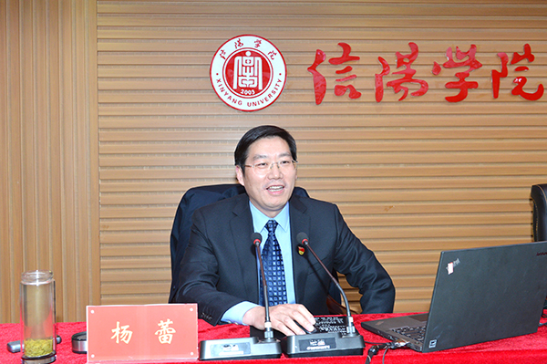 12月26日,信阳市委常委、纪委书记杨蕾,在我校行政楼208会议室作了题为《反腐败形势与任务》的学习十九大精神专题报告。信阳市副市长邵华,信阳学院理事长高云,名誉校长王北生,专职书记施昌海,常务副校长傅洪涛,副校长王志华、毛海涛,校长助理高雅、杨高伟,全校中层以上干部和部分青年教师共同聆听了报告会。王北生主持了报告会。