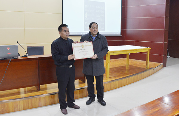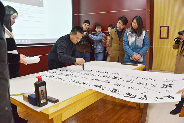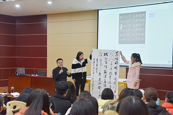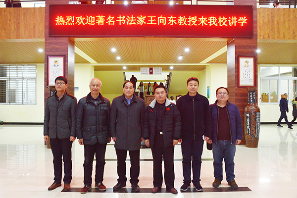 为加强校园文化建设,营造清逸高雅、恬淡安静的校园文化氛围,让广大师生了解书法作为中华民族瑰宝的独特魅力,进一步弘扬和传播中华优秀传统文化,12月7日下午,应我校邀请,北京工业大学艺术设计学院书法教授、中国书法家协会会员王向东教授在图书馆101学术报告厅作了一场精彩的书法讲座,讲座受到了师生的热烈欢迎。名誉校长王北生、副校长王志华出席了报告会。艺术学院党总支书记李世胜以及300余名师生共同聆听了讲座。
