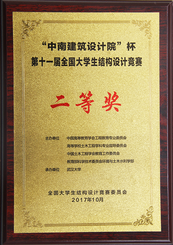 2017年10月19日—10月22日,“中南建筑设计院杯”第十一届全国大学生结构设计竞赛在武汉大学拉开帷幕。本次大赛由中国高等教育学会工程教育专业委员会、高等学校土木工程学科专业指导委员会、中国土木工程学会教育工作委员会、教育部科学技术委员会环境与土木水利学部主办,武汉大学承办。