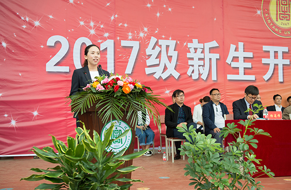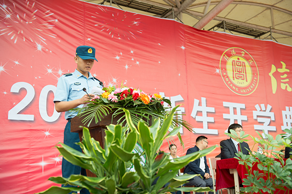王北生发表热情洋溢的讲话。他代表学校向来自全国各地的新同学表示最热烈的欢迎,向受到大会表彰的优秀新生表示诚挚的祝贺,向承训部队首长和全体教官致以最崇高的敬意。他说,2017级新同学们带着对人生的美好憧憬,走进了信阳学院校园,成为学校大家庭的一员。作为校长,他感到无比高兴和自豪。感谢各位新同学选择了信阳学院,为学校注入了新的血液和力量。
