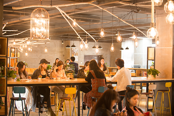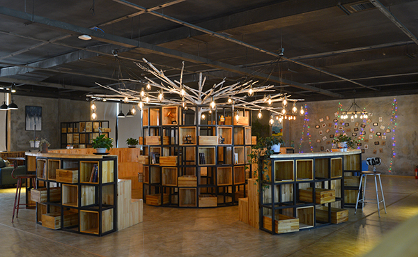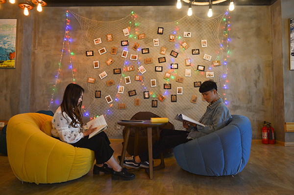 书吧内设各种造型各异的沙发、吧台,以及各具特色的吊灯和错落有致的书架。书架中随处可见的畅销图书和各类休闲杂志,与许多新奇有趣的工艺摆件一起,营造了轻松愉快又不失内涵的时尚氛围。在这里,你可以端一杯清茶,选一个靠窗的位置,沉浸在带有墨香的书卷里,与历史对话,与名人交流;你也可以带着一份闲适的心情,径自让笔尖在纸张上游走,以笔问道,探索世间话题。在这静谧的空间里,或品阅时光,或分享感悟,或只是做一名安静的沉思者,沙发雅座或席地阅读都别有一番情趣。