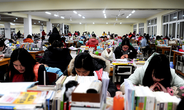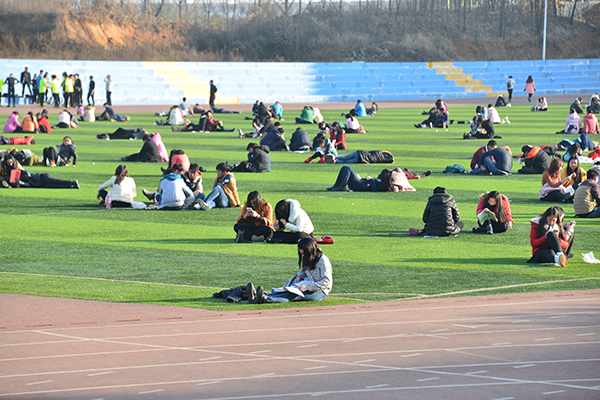 华大浓郁的学习氛围,为学子们实践梦想提供了强大动力。图书馆附近,有一位迎着寒风背诵英语文章的同学,她是2012级汉语言文学的胡珂,正在为考研忙碌。准备考首都师范大学的她,提及以前,觉得自己走了很多弯路,并且给学弟学妹们提了建议:“考研要有计划,要按时完成早、中、晚的学习任务,每天坚持按部就班地复习,做好点滴积累。”谈话中得知,她们宿舍有5人准备考研,宿舍成员早已习惯这种携手拼搏的校园学习生活。如胡珂一样迎着冬之寒冷,在校园池塘边、草坪上读书的同学不胜枚举,硕士研究生考试、期末考试开考在即,同学们选择了争分夺秒……