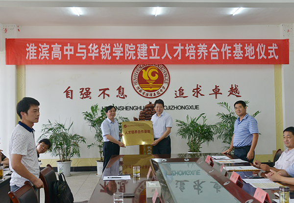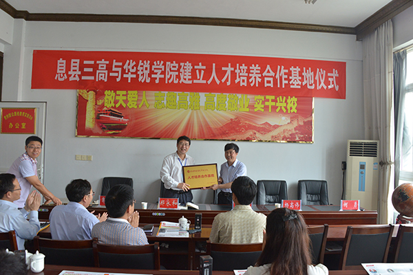 为了有效对接基础教育,增强学院人才培养工作的针对性,进一步推动教育教学改革,提高人才培养质量,近期我院院长施昌海带领院长助理杨高伟、院办负责人张富庄、招就部负责人郭二军等先后奔赴信阳市罗山高级中学、淮滨高级中学和息县三中,参加在上述3所学校举行的人才培养合作基地挂牌仪式。