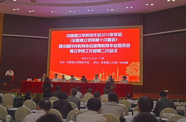 1月7日至8日,中国独立学院协作会2015年年会(全国独立学院第十次峰会)暨中国民办教育专业委员会高等教育协会独立学院工作部第二次会议在广州召开。中国民办教育协会高等教育专业委员会、广东省教育厅相关领导及来自全国28个省(市、自治区)200余所独立学院的470多名代表与会。我院院长施昌海等应邀参加了会议。