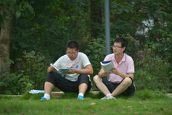 人间最美读书声,校园醉人是书香。放眼整个校园,图书馆前、体育场内、树荫下、草地旁、台阶边……校园里到处都是同学们埋头读书、学习和备考的身影,或默默背诵,或轻轻诵读,或用笔在书本上圈划着……那么认真、那么忘我、那么投入,勾勒出了一幅幅“书香醉人”的美妙画卷。
