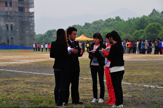 比赛期间,我们随时可以看到志愿者的身影,他们将微笑送给他人,将呐喊留在心里。那两天他们总是来得最早走得最晚,他们的辛苦映衬在了热情的奔跑中。一名志愿者告诉我们,她已经在赛道旁站了两天,觉得运动员真的很辛苦,所以她更应该做好志愿服务工作,维护好赛场,做好比赛的咨询服务工作。天气仿佛是一个淘气的孩子,一直阴着脸和我们怄气,可是听着激昂的加油词,看到捧着证书的运动员,以及赛场上一浪高过一浪的热情,天气的影响似乎并不算什么,此刻的风也更加柔和了。远处,志愿者们依然坚守在自己的岗位上,用真诚的服务为运动会增添着感动。