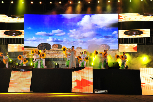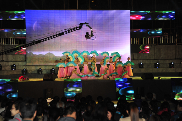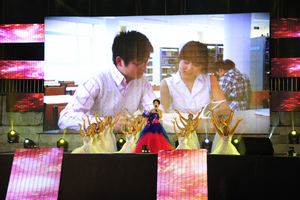 在晚会开始前,全场观众共同观看了院庆掠影“十年回眸,未来展望”专题片,见证了华锐学院十年发展变化的点点滴滴。晚会分为“豫风楚韵•青春华锐”、“春华秋实•魅力华锐”、“蓄势腾飞•梦想华锐”三个篇章。“信阳最美丽,你美在传奇的故事里,你美在茶香飘荡的春天里,你美在昨日的烽烟里,你美在信阳人今天的心里……”晚会在《信阳最美丽》的歌声中拉开了帷幕。悠远的歌声依旧回荡在耳边,舞蹈《茶乡•茶韵》对古典美的演绎已展现在观众眼前。舞蹈表现了富有地域特色的文化内涵,彰显了茶韵悠悠的文化精髓,正如一杯好茶离不开一波清泉,一次腾飞也离不开往日的积淀。“饮其流者怀其源,学其成师念吾师”,一首《思源》唱出了华锐广大校友不忘母校的浓浓心声。十年也许在历史上只是一个瞬间,但在华锐年轻的校史上却记载下了奋斗的足迹和跋涉的历程。踏着成长的节拍,我们抵达十年的站台。和着青春的歌曲,我们开始未来的征程。回首过去,我院紧紧依靠国家给力、自身发力两大动力支持,不懈奋斗,砥砺前行,走过艰辛而辉煌的历程,赢得了社会各界的尊重和青睐。歌曲《追寻》和诗歌朗诵《征程》从多方面展示了华锐十年来的丰硕成果,“楼宇林立,设施完善,设备齐全,山清水秀,绿围翠绕,花木交荫”,华锐的美丽蕴含了豫南水乡的清俊和灵秀。