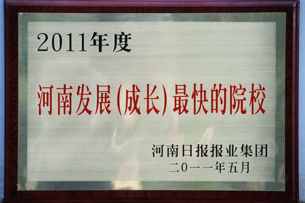 原河南省人大常委会党组书记、常务副主任李柏拴,北京大学党委副书记于鸿君,河南日报报业集团总经理张建等为入选院校颁发了奖牌和证书,在本次评选活动中,我院被评为“河南发展(成长)最快的院校”。